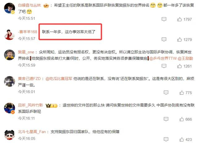 对于王励勤的话,有些球迷表示了质疑,有的球迷则心怀期待。质疑的人认为,王励勤的办事效率太低了,都这个时候了竟然还在联系当中,要知道2026年世界乒乓球团体锦标赛再过一个多月就要开始了。期待的人认为,这是樊振东回归国乒的一个乐观信号。就樊振东而言,只要国家队需要他,他肯定愿意放下一切归队。