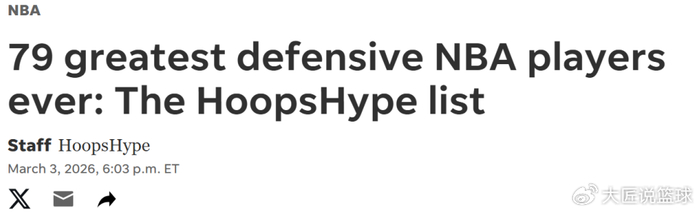 在又一个赛季进入冲刺阶段之际,美媒《hoopshype》根据最新表现评选出NBA史上TOP79防守者,其中詹姆斯32乔丹15追梦14魔兽10,中锋包揽榜单前二。